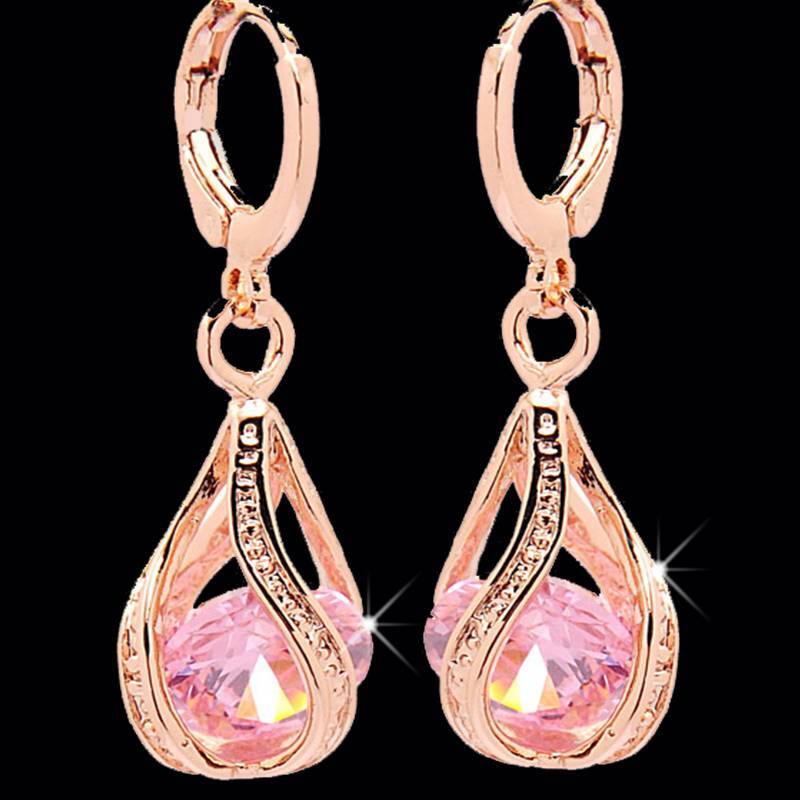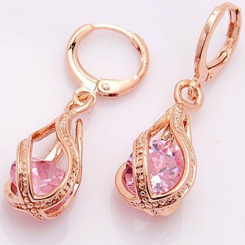 新品 18Kローズゴールド加工ゆらゆら大粒CZピアスピンク0029