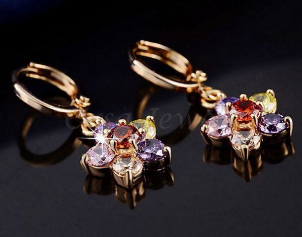 新品 18K加工 美しきフラワーAAACZドロップピアス0043