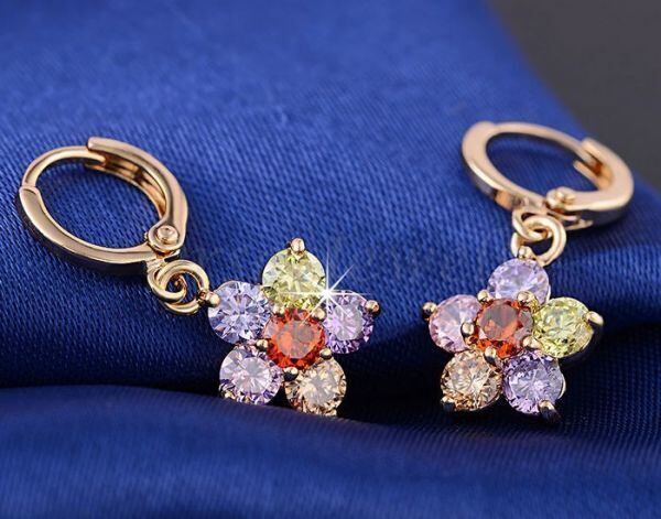 新品 ゴールド加工 多色キラキラフラワー スタルピアス217