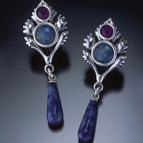 ★新品 シルバー加工 深いblueが印象的 ソーダライト石ピアスv138