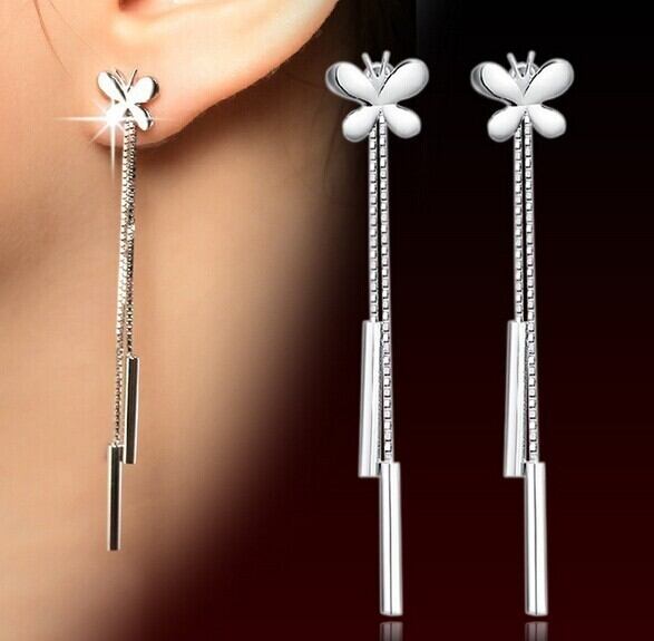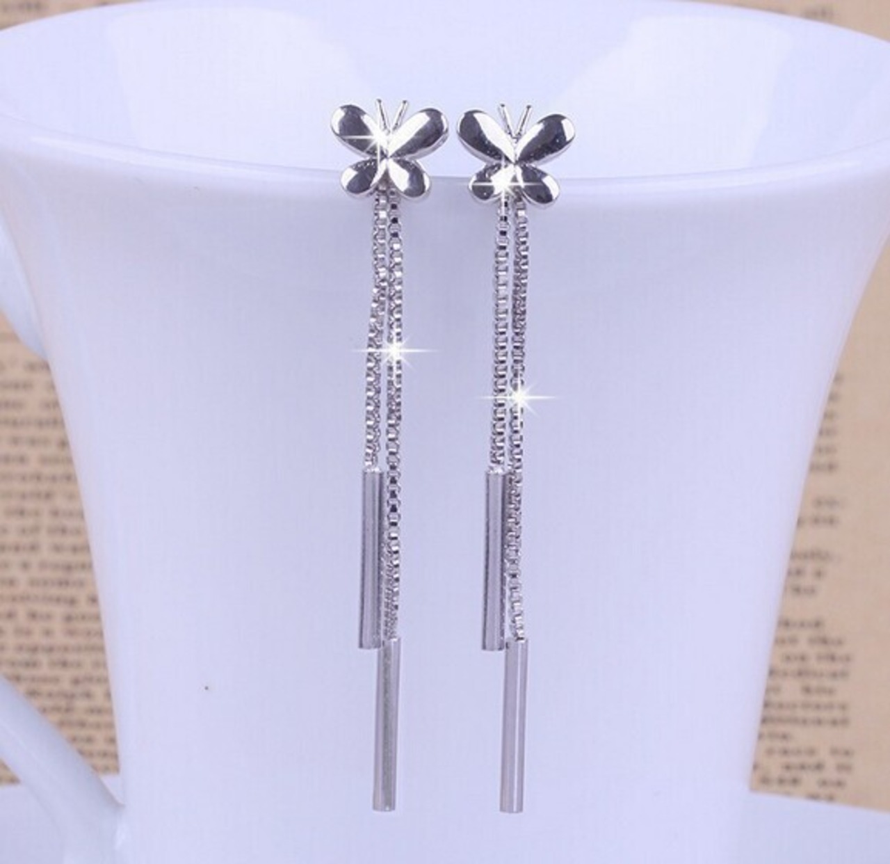 ★新品 silver925 舞う蝶 2本のチェーン 美しきピアス356