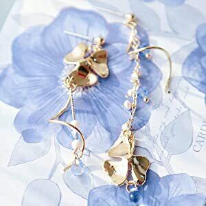 新品 ゴール加工 やんわり紫ハートの花びらをもつ longクリスタルピアス