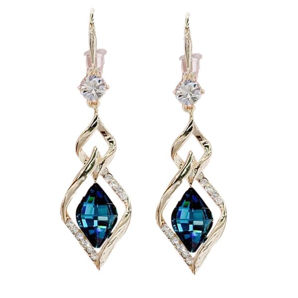 新品 18K加工 揺らめくブルーのオーストラリアクリスタルとCZのコラボピアス