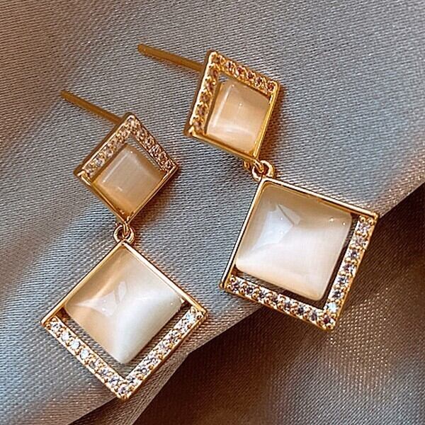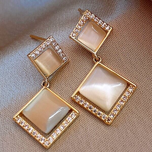 新品 ゴールド加工 かわいいスクエアクリスタル&CZピアス