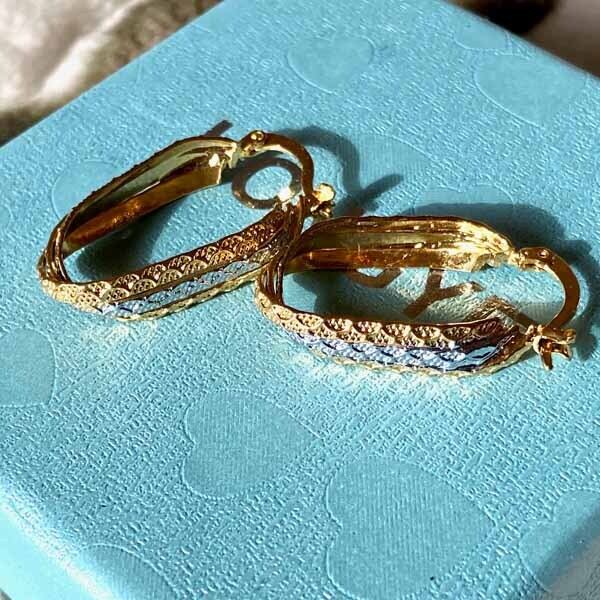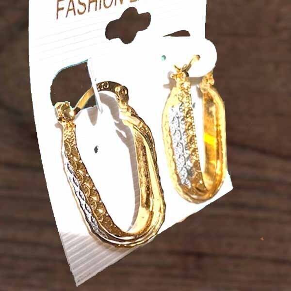 新品 ゴールド&シルバー加工 クロスする輝き ピアス