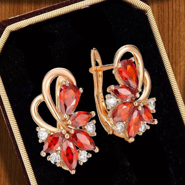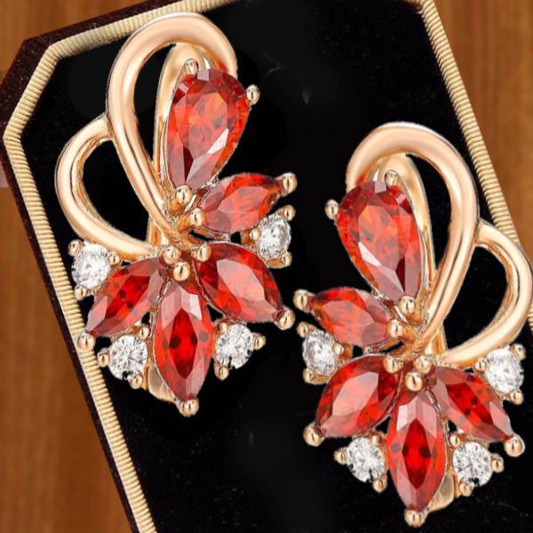 新品 ゴールド加工 赤の花 耳元を華やかにCZピアス