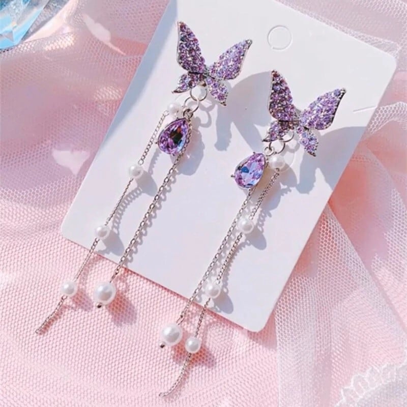 新品 可愛さいっぱい シルバー加工 輝く蝶 ロングピアス