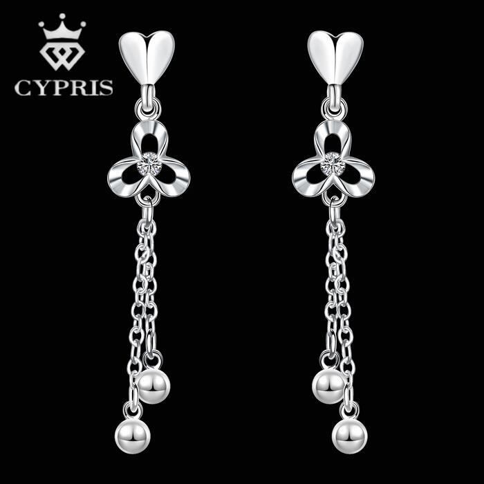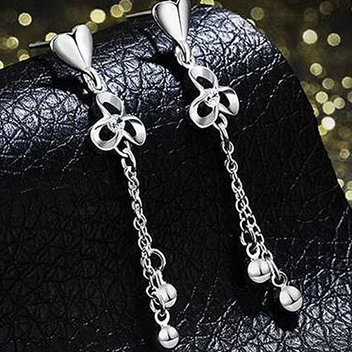 新品 シルバー925 キュートの下でクローバーと揺れる2つのボールピアス