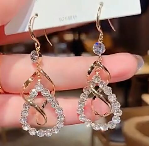 新品 18K加工 ねじれるゴールドとクリスタルのコラボ 大人の輝きピアス
