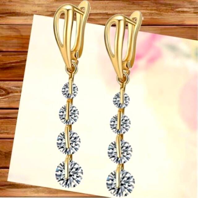 キュービックジルコニアを4連にした、動くたび揺れるピアスです。
