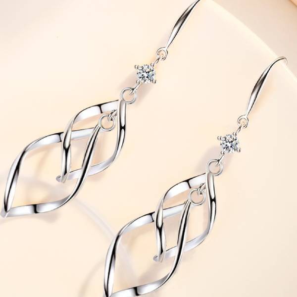 新品 シルバー925 ねじれるシルバー 輝くCZピアス