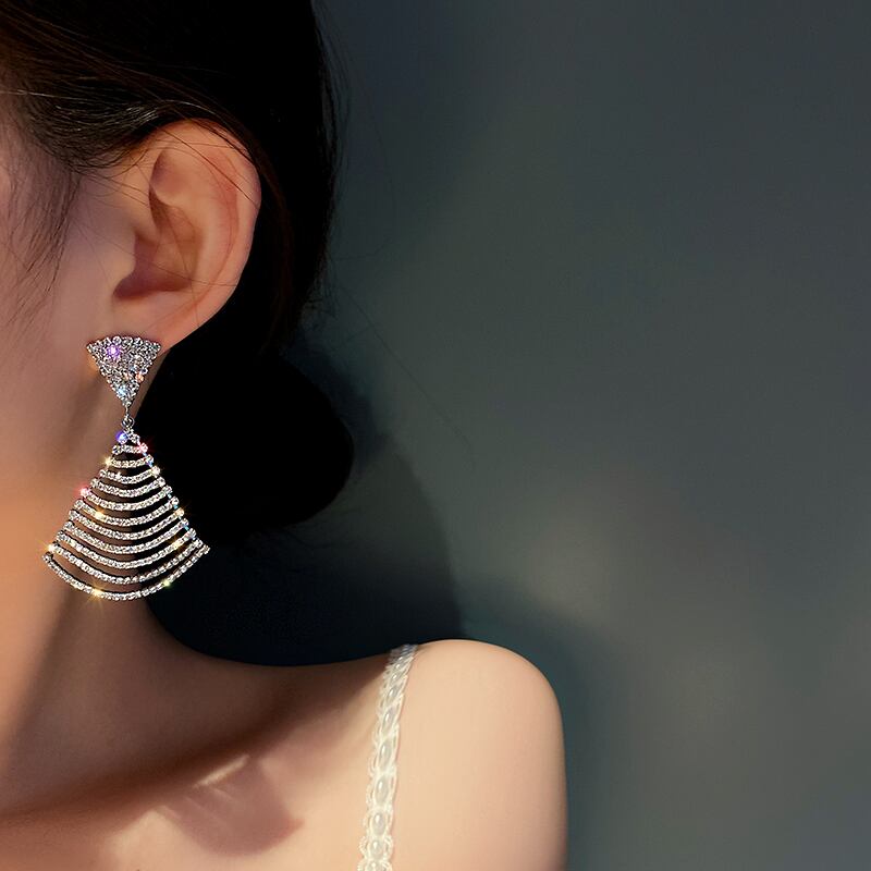 新品 シルバー加工 トライアングルの輝き クリスタルピアス