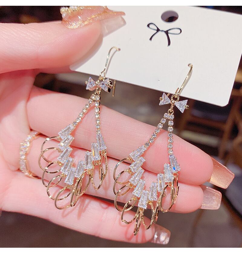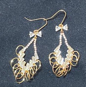 新品 18K加工 ゆれるリングゴールドとクリスタルリボンピアス
