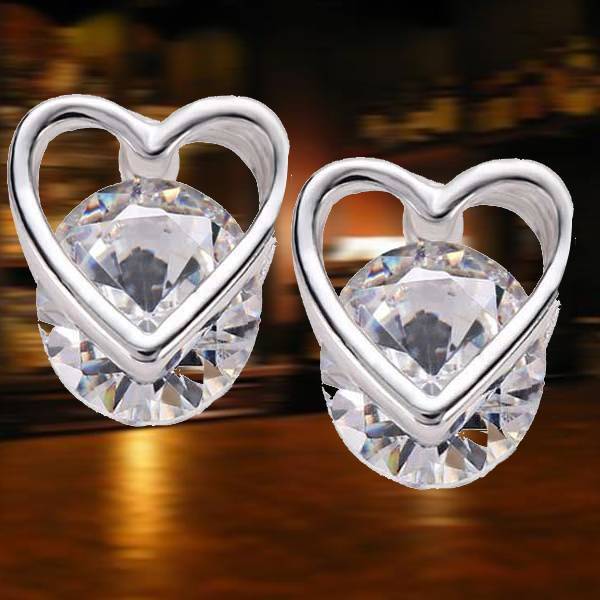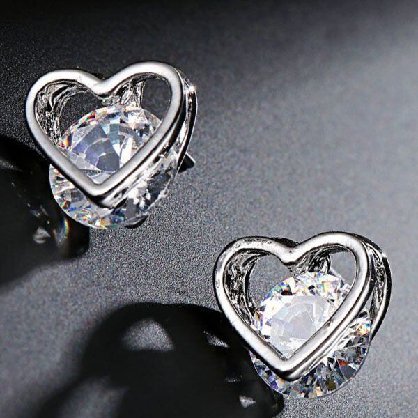 新品 シルバー加工 可愛いハートが美しいCZピアス