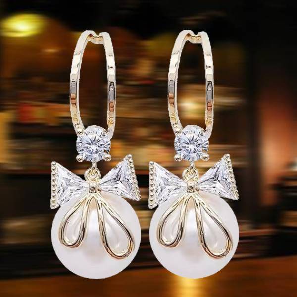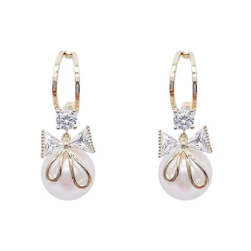 新品 18K加工 リボンと可愛い石のコラボ(#^.^#)CZピアス