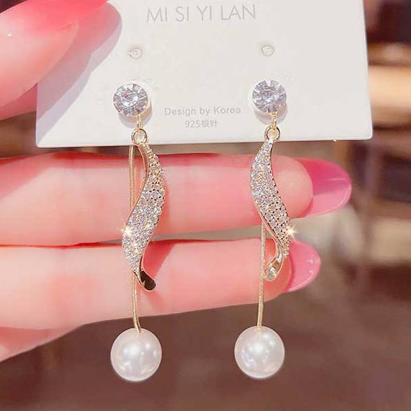 新品 18K加工 ねじれるゴールドとゆれるパールピス