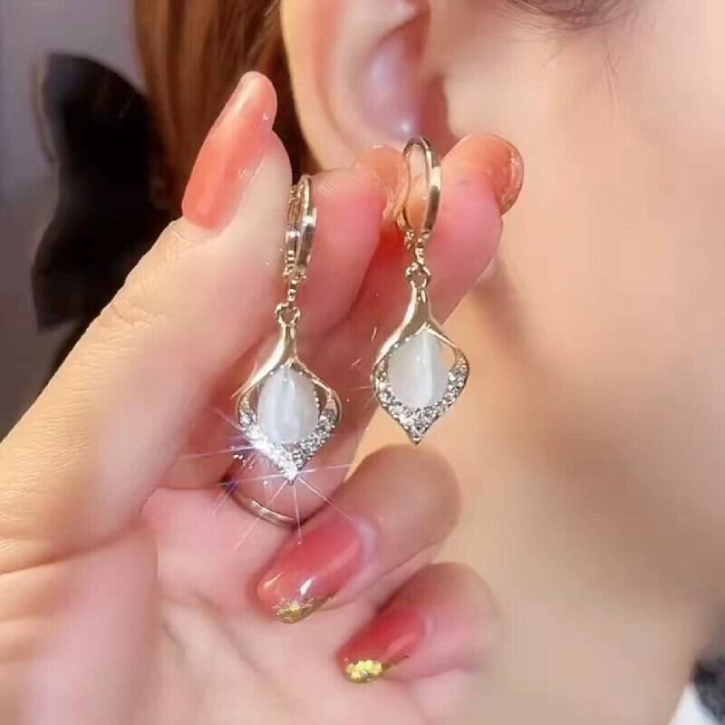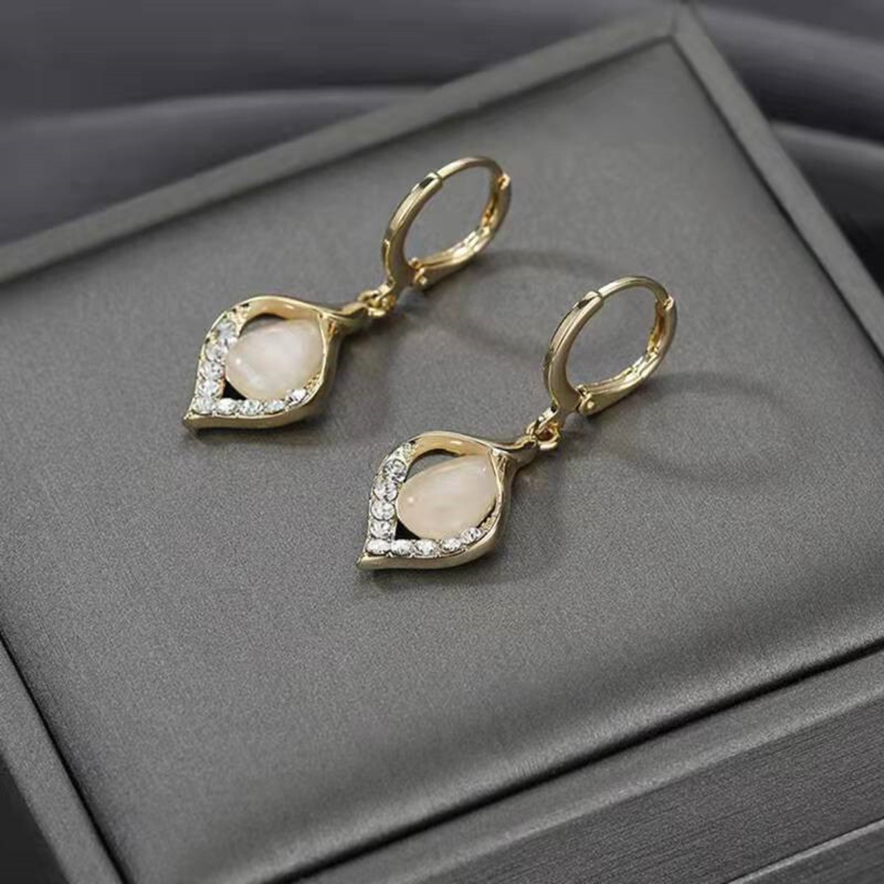 新品 ステンレス銅加工 グラデーションクリーム クリスタルピアス
