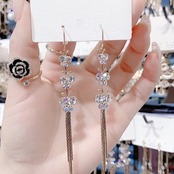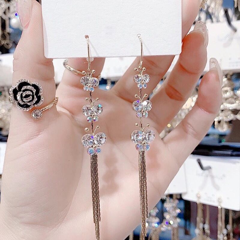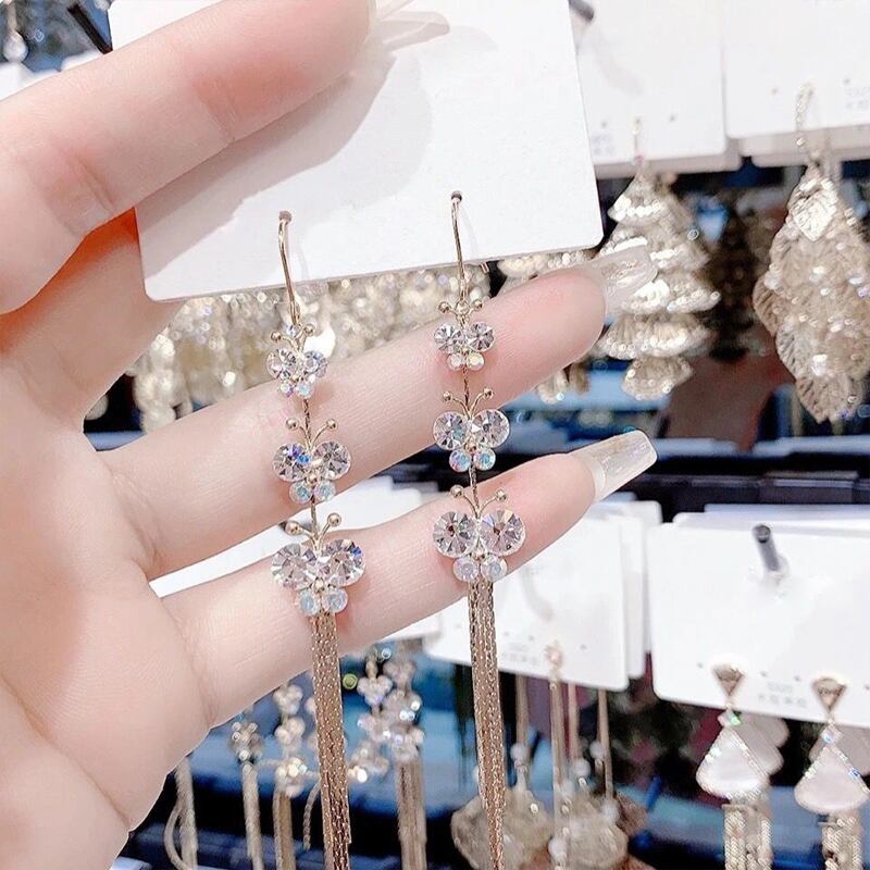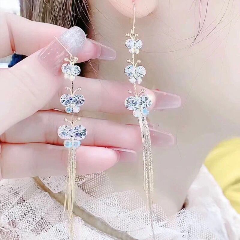 新品 18K加工 耳元を飛ぶ3連の蝶 クリスタルピアス