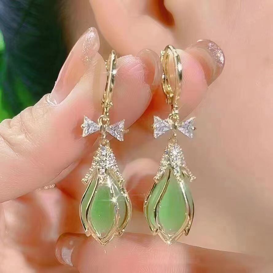 ★新品 ゴールド加工 リボンが可愛い クリスタルピアス