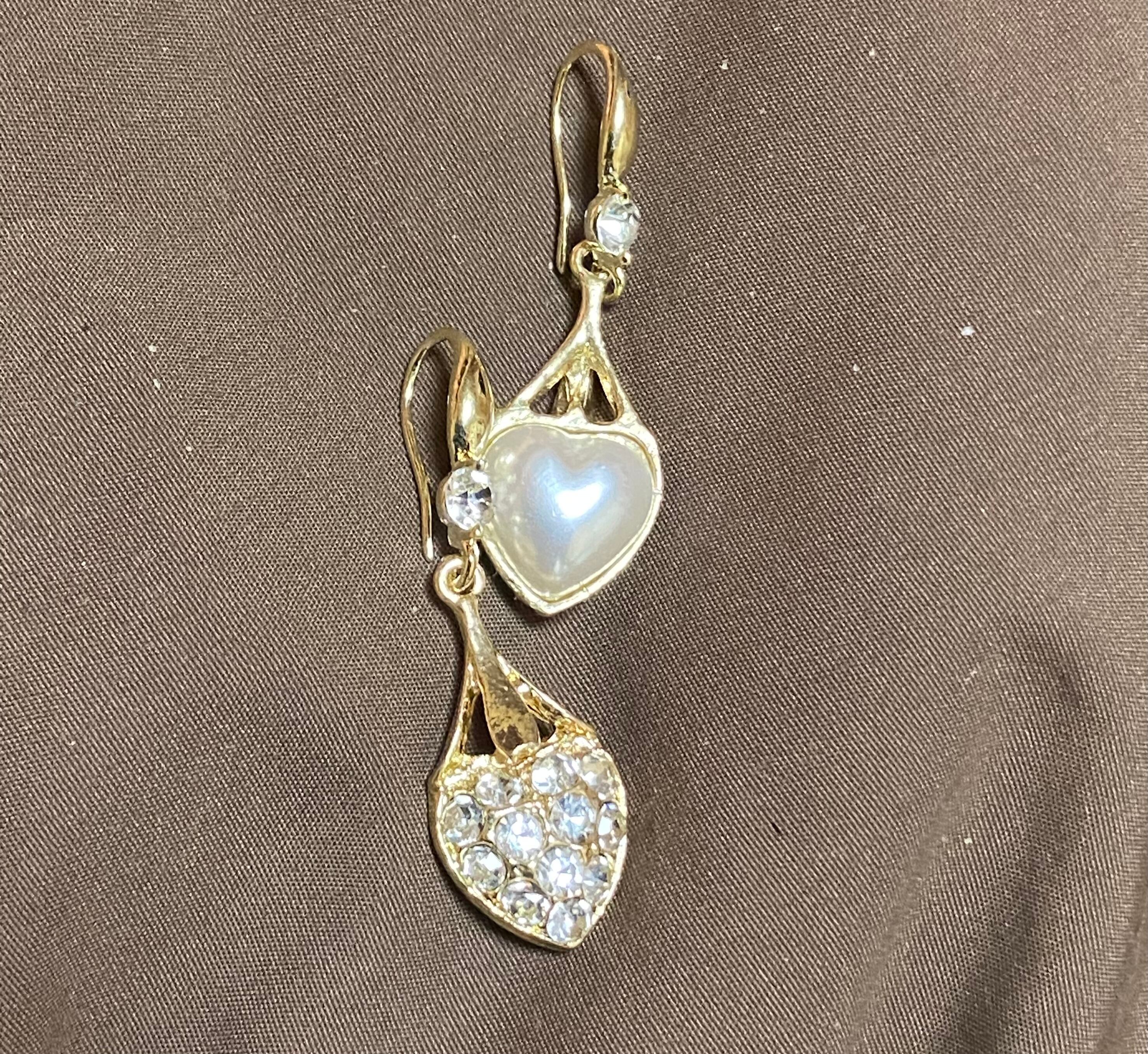 新品 18K加工 表クリスタルでキラキラ裏は品の良い模擬パールで2度おいしいハートピアス