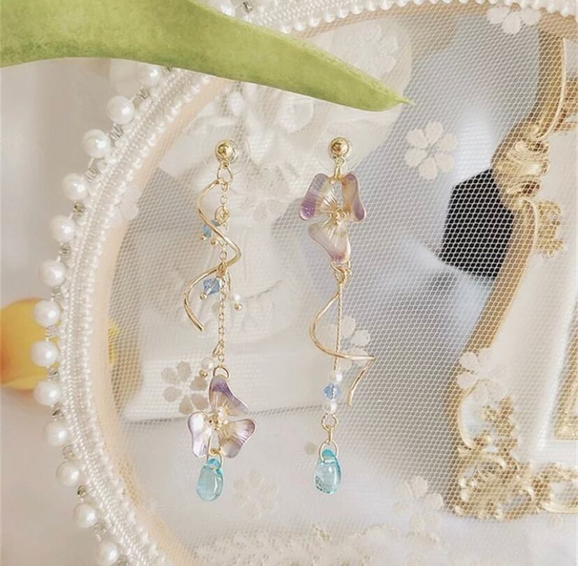 ★新品 ゴールド加工 可愛いフラワーロングピアス