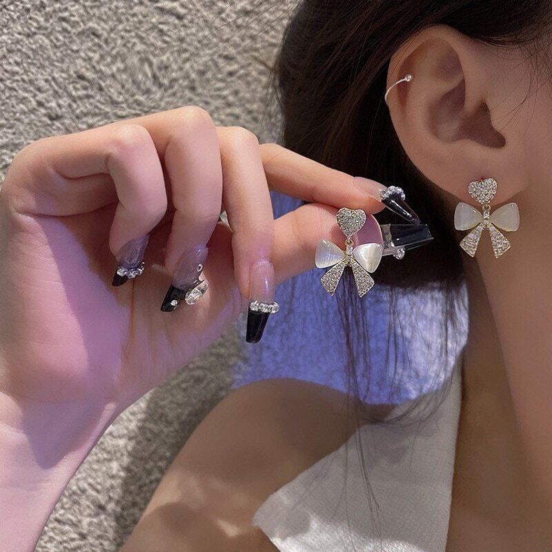 新品 18K加工 ハートとリボンが耳元を飾る CZピアス