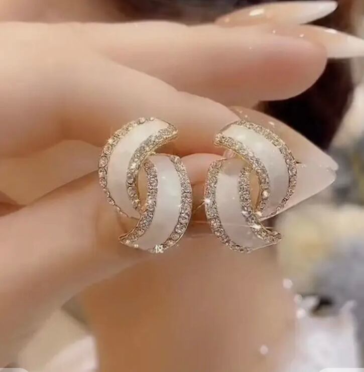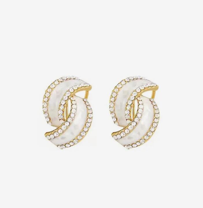 新品 輝きゴールドとホワイトクリスタルピアス